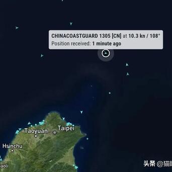 船舶位置信息显示,就在今天中午,参加本次军演的中国海警1305舰,已经接近台岛北部台北外海,航速10.5节,航向108度,向台岛东南方行驶,执行理性环岛警戒任务!
